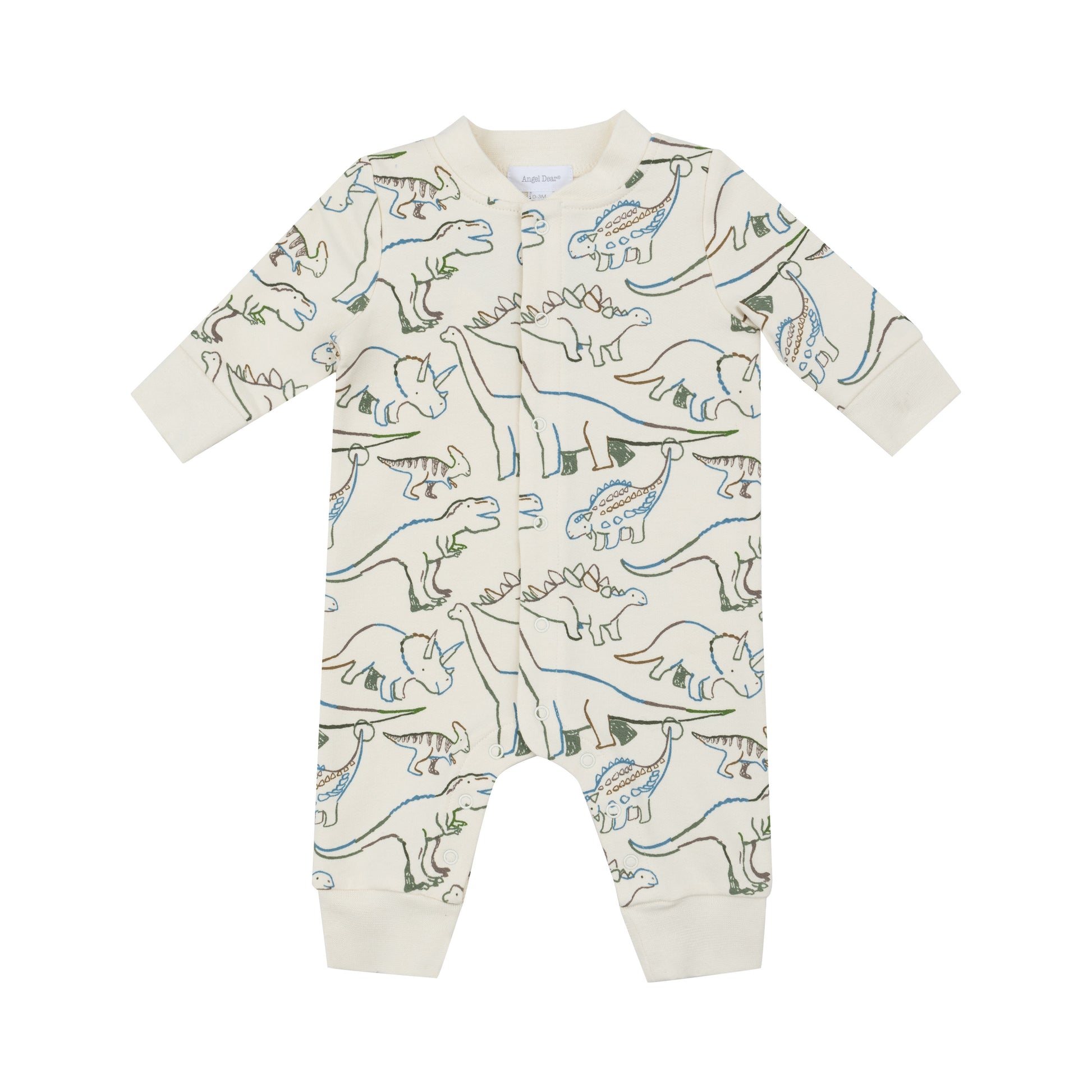 Artsy Dino Baseball Collar Romper in Ivory.