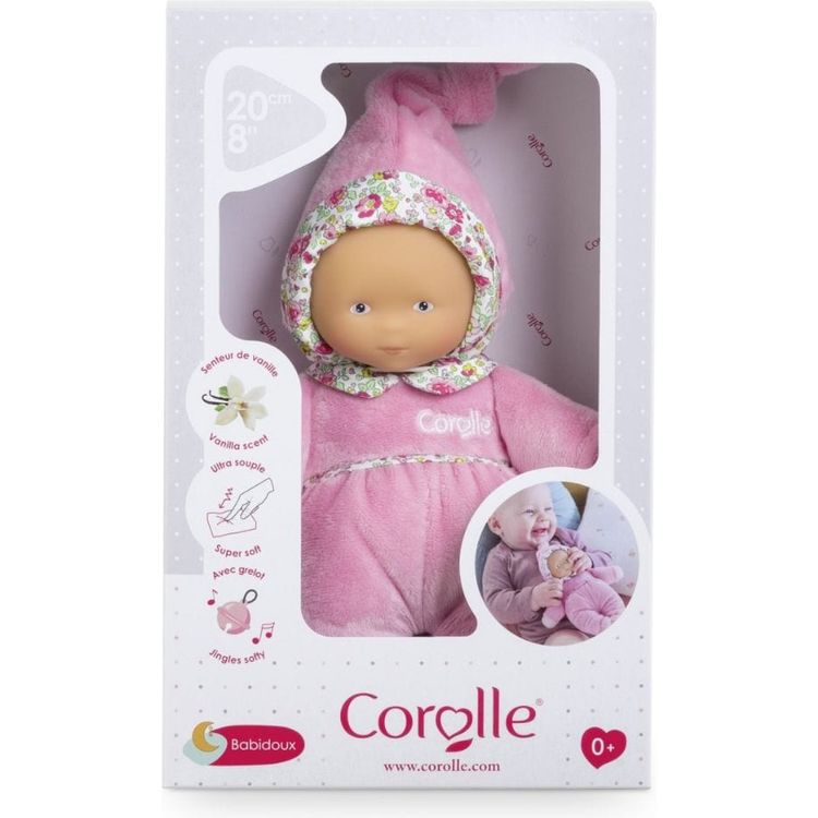 Babidoux Blossom Garden is baby's first best friend with a tinkling bell inside, elf-like ""shoes"" and lots of grip points. Babidoux Blossom Garden is perfectly sized (8"") and lightweight so it's easy for tiny hands to grasp and hold and made of ultra-soft fabric that makes it very cuddly. Its sweet, realistic vinyl face delights and comforts baby and is delicately scented with vanilla - a Corolle signature.