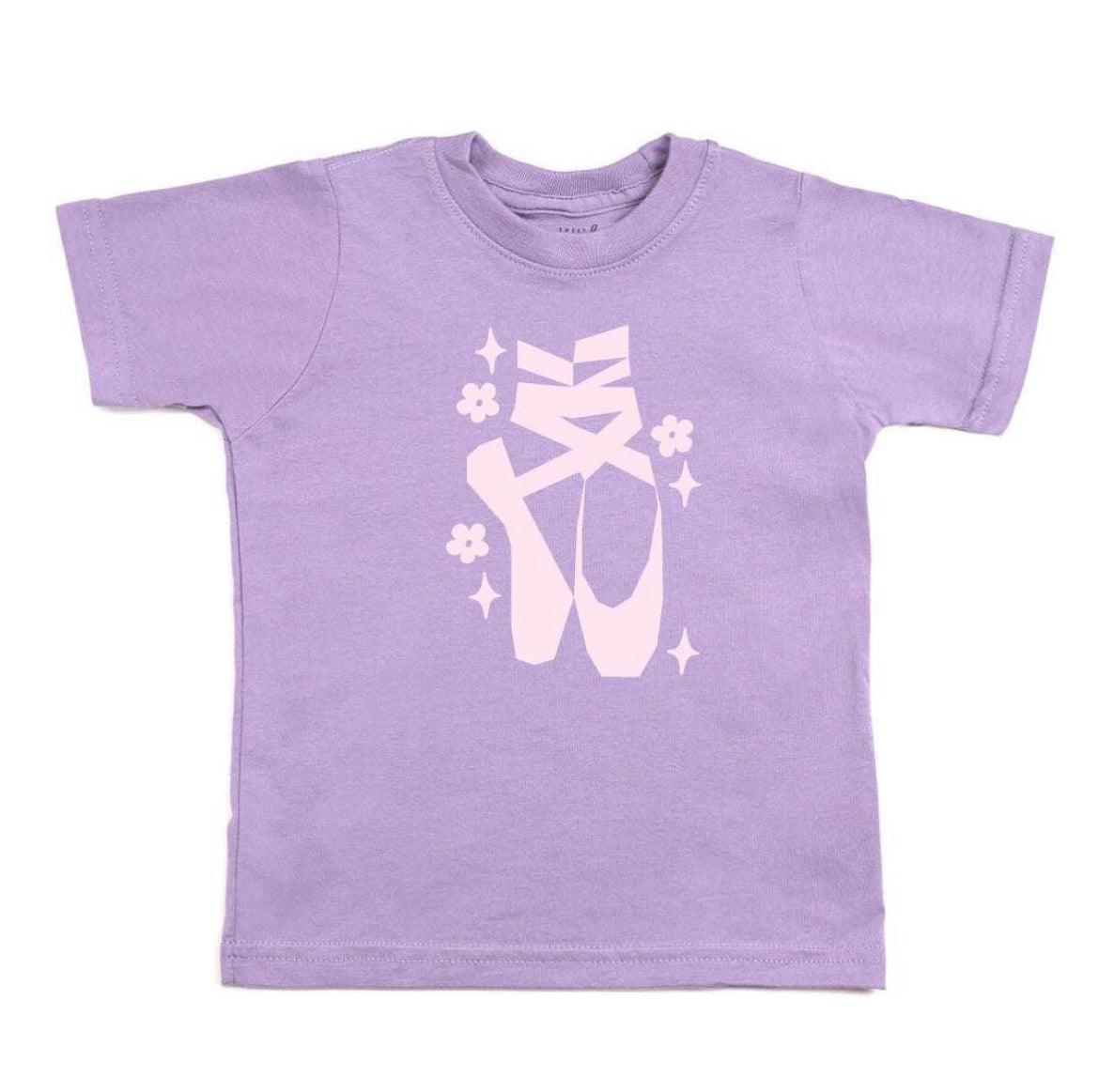 Pink Ballet Shoes Tee on purple heather Bella Canva