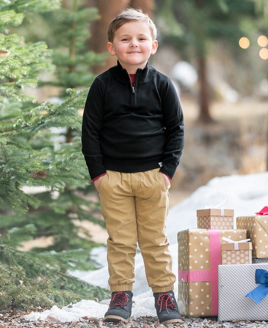 Your little guy will look so dapper and grown up in this adorable pullover sweater. The quarter-zip adds a little extra character to this mini-man cardigan.