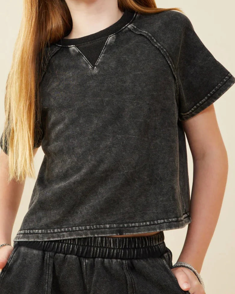 This Black Washed Top & Joggers are the perfect blend of cool and comfy for school days! With their trendy washed look and relaxed fit, she'll be ready to conquer the classroom while staying stylish. Soft fabric moves with her from morning bell to afternoon recess, making this set a back-to-school wardrobe essential!