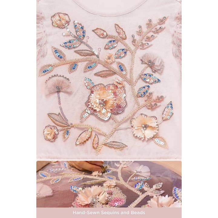 The exquisite embroidery on the tutu dress highlights the liveliness and cuteness of the child. This adorable tutu is the perfect outfit for your little love is birthday or holiday photo shoot! Features: * Hand-sewn sequins and tulle satin flowers * Lively flutter sleeves * Tiered ruffles design * Elasticated waist *Lined