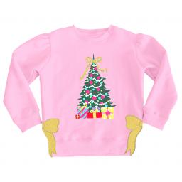 Pink sweatshirt with glitter christmas tree and bow slit on the sides.