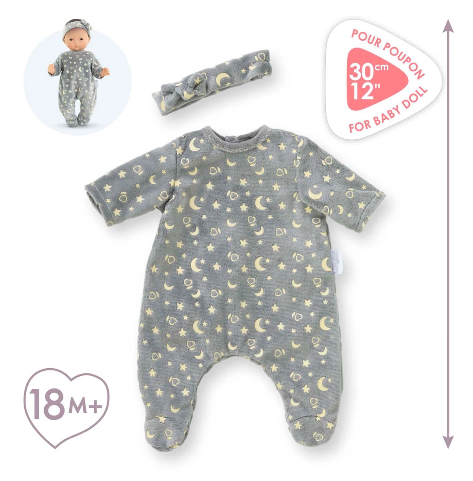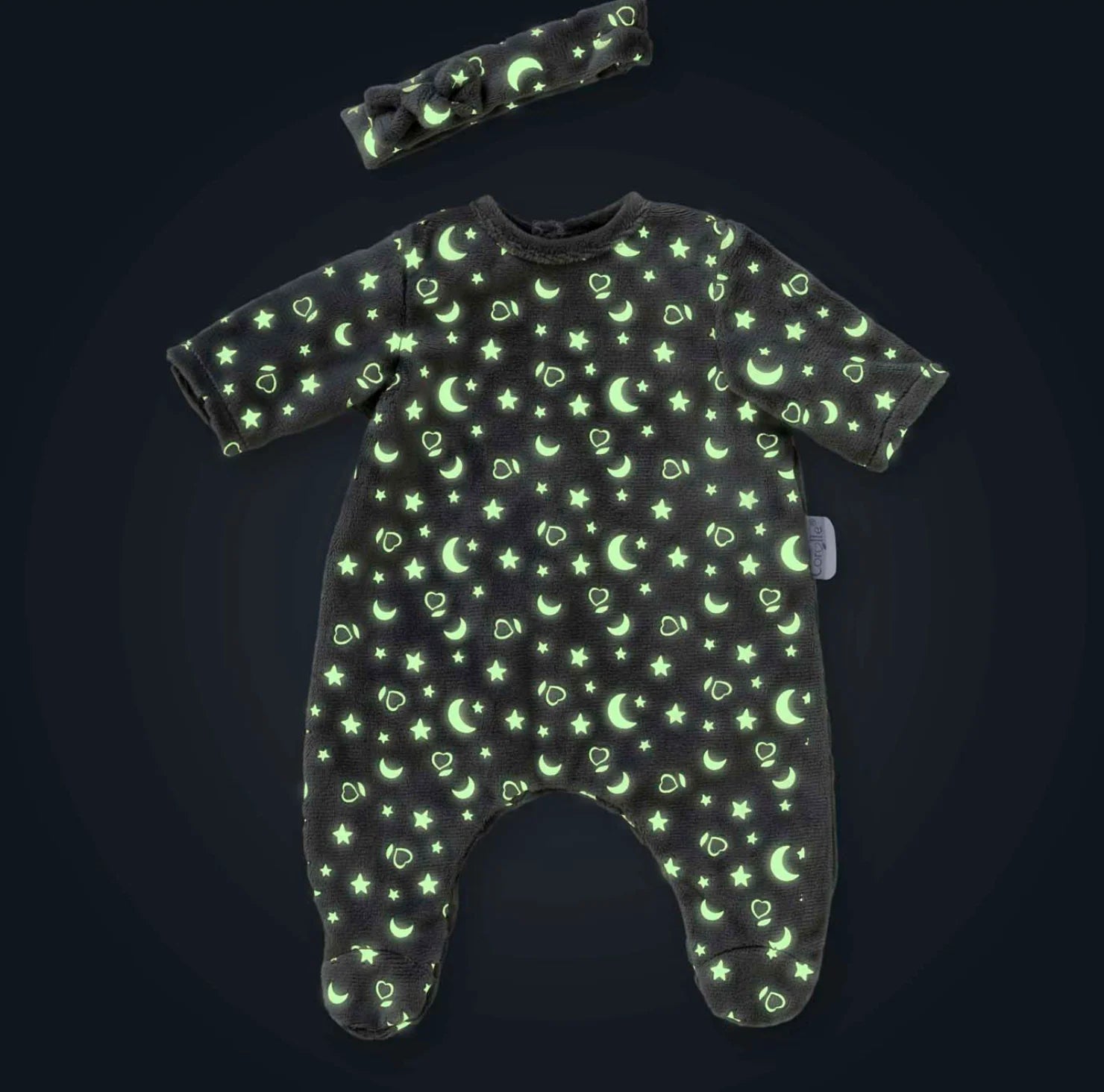 The Shine in the Night pyjamas with headband are the ideal garment for small Corolle dolls of 30 cm. These beautiful pyjamas are made of soft and durable materials. The beautiful stars and moons light up these soft pyjamas when they glow in the dark!
