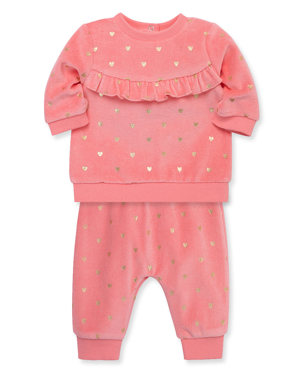 Gold Hearts Velour Pants Set