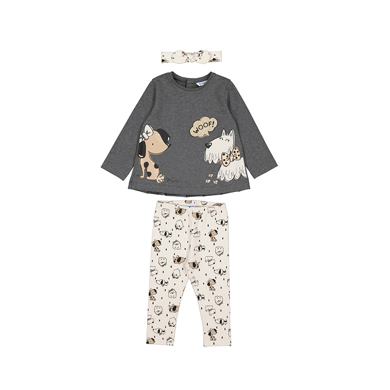 Leggings Set-charcoal shirt and chickpea leggings with matching headband