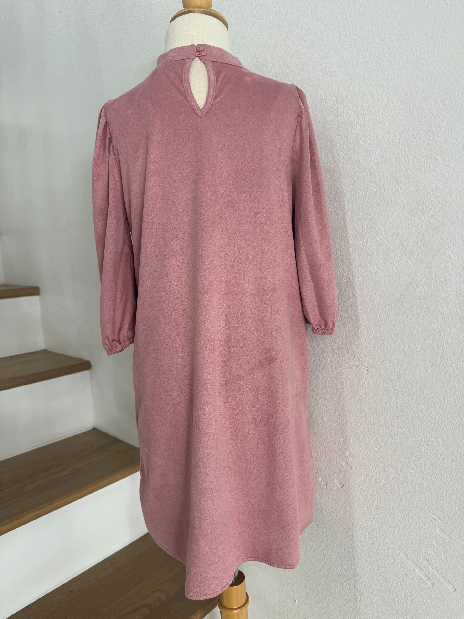 Puff Sleeve Suede Dress-Pink