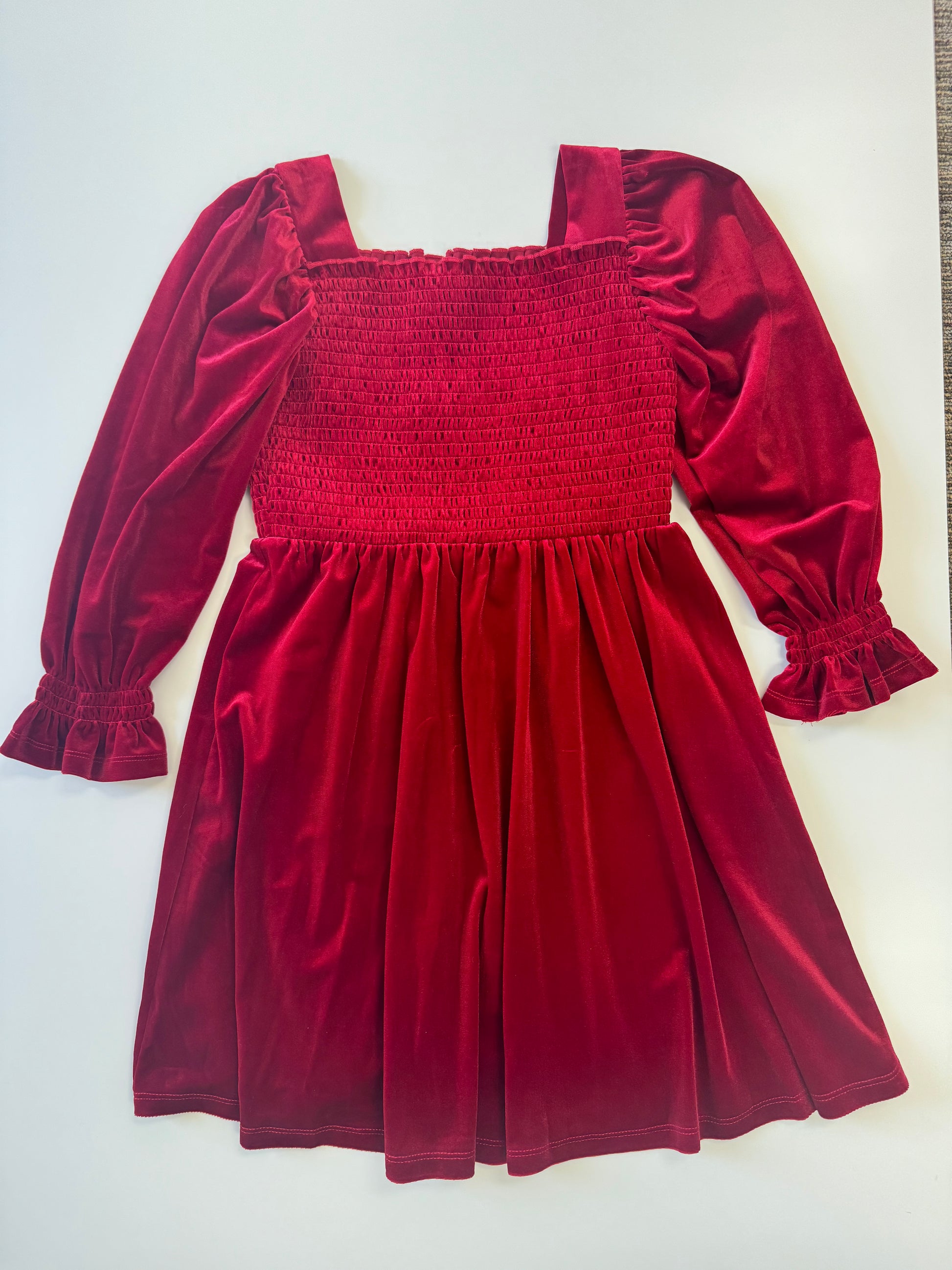 Red Velvet Gathered Dress
