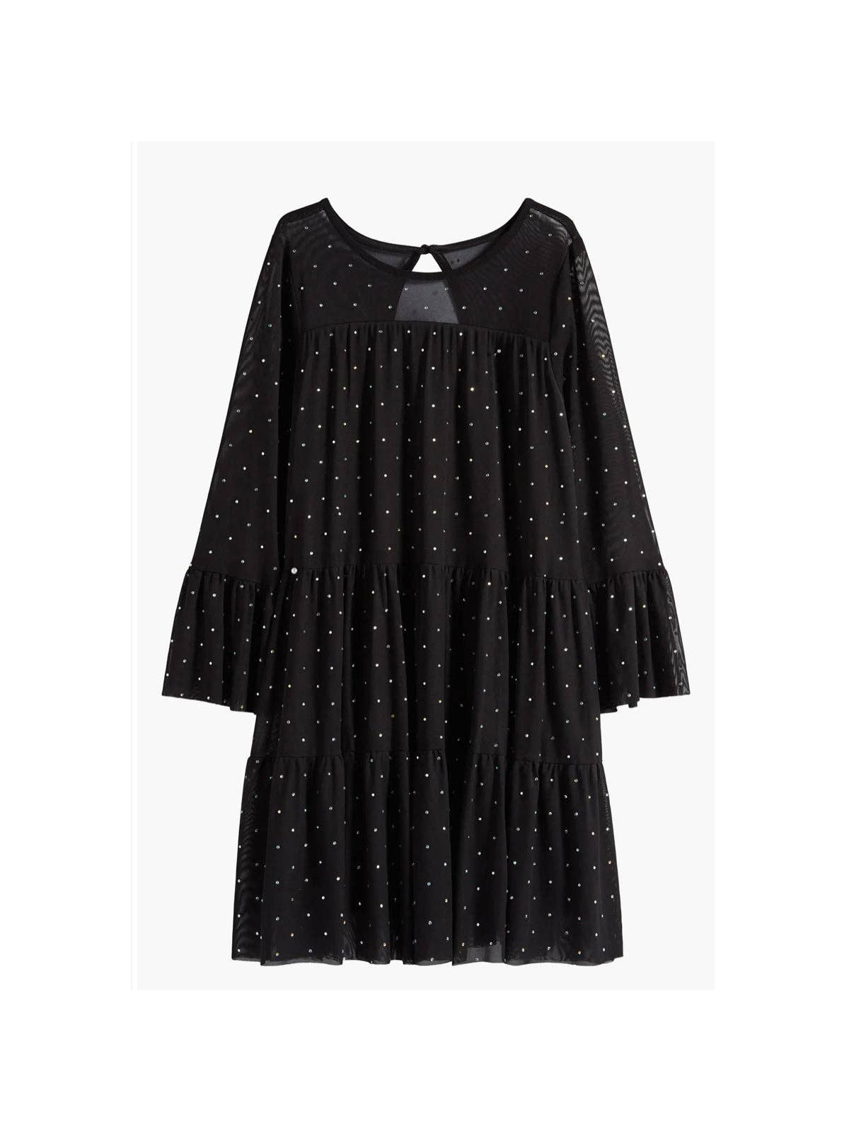 Be a real showstopper in this Rhinestone Mesh Long Sleeve dress! Featuring dazzling rhinestone detailing on mesh, and a trendy trapeze silhouette, this dress will have your little trendsetter sparkling in style. Let her shine bright like a diamond!