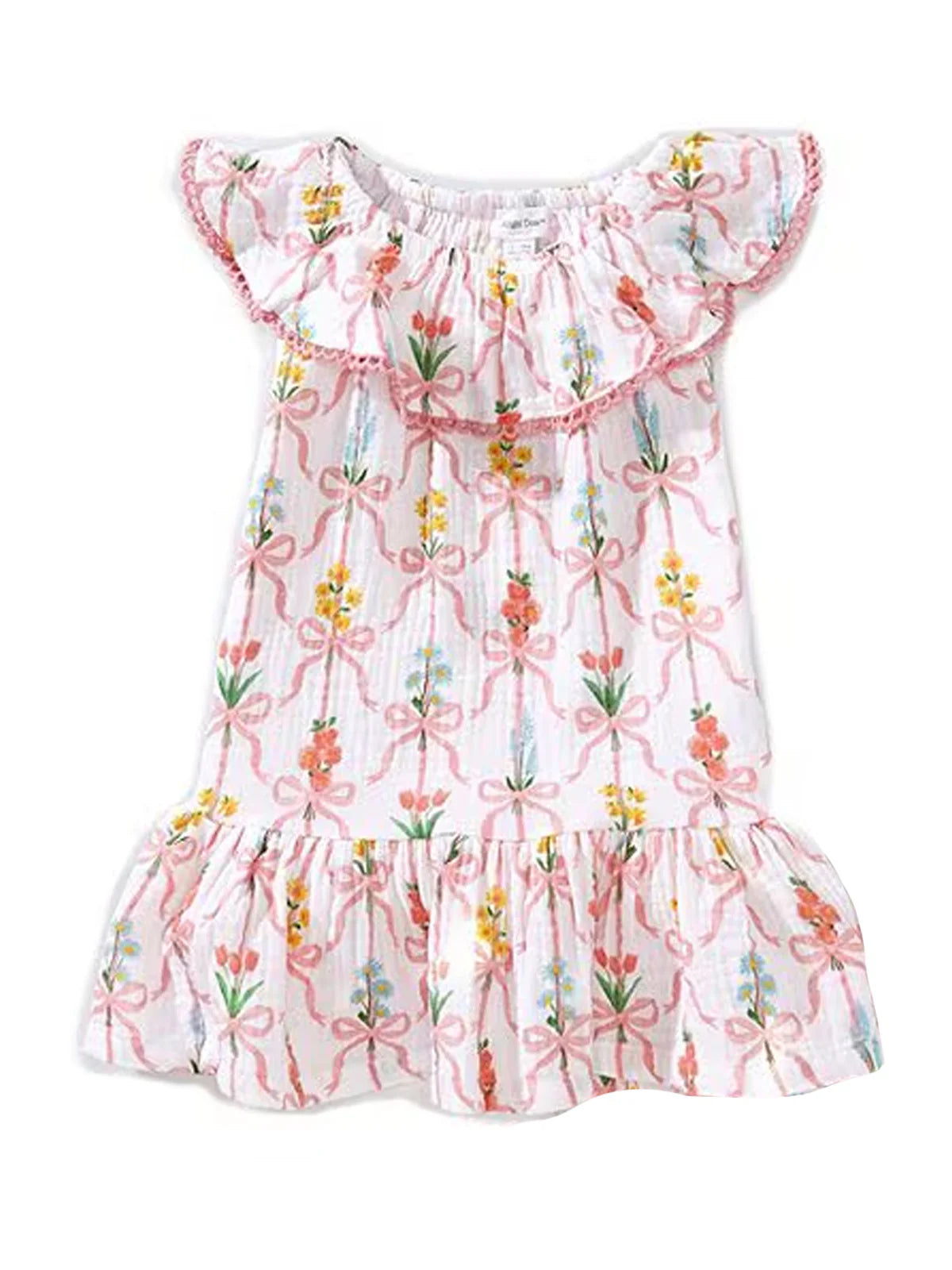 Ribbon Bouquets Circle Neck Ruffle Dress