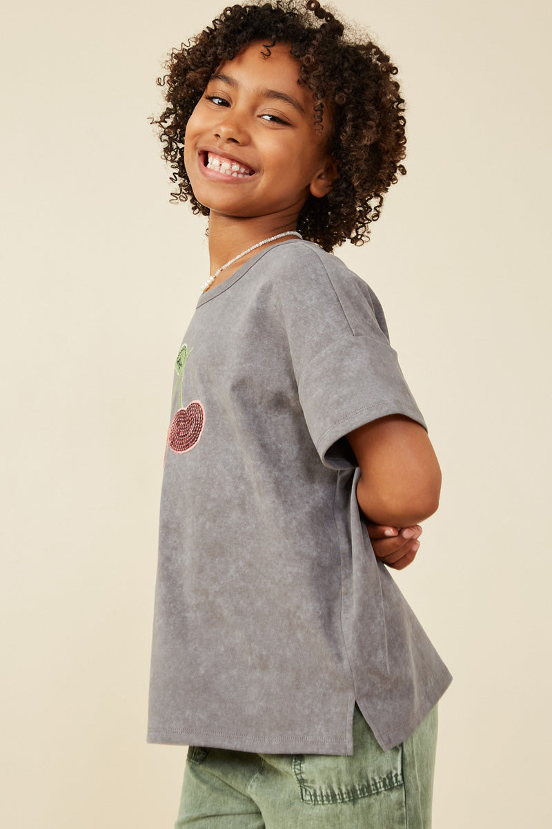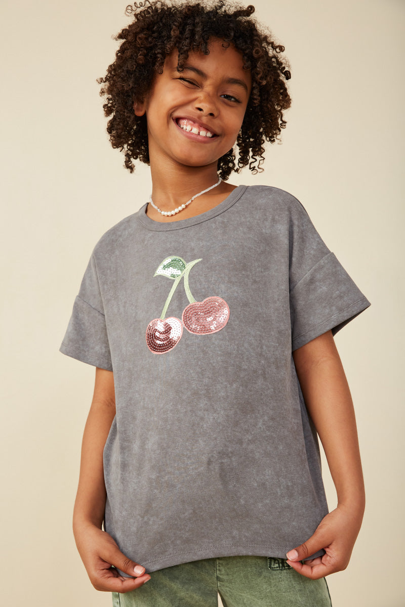 Our Sequin Cherry Patch Washed Out Tee Features: