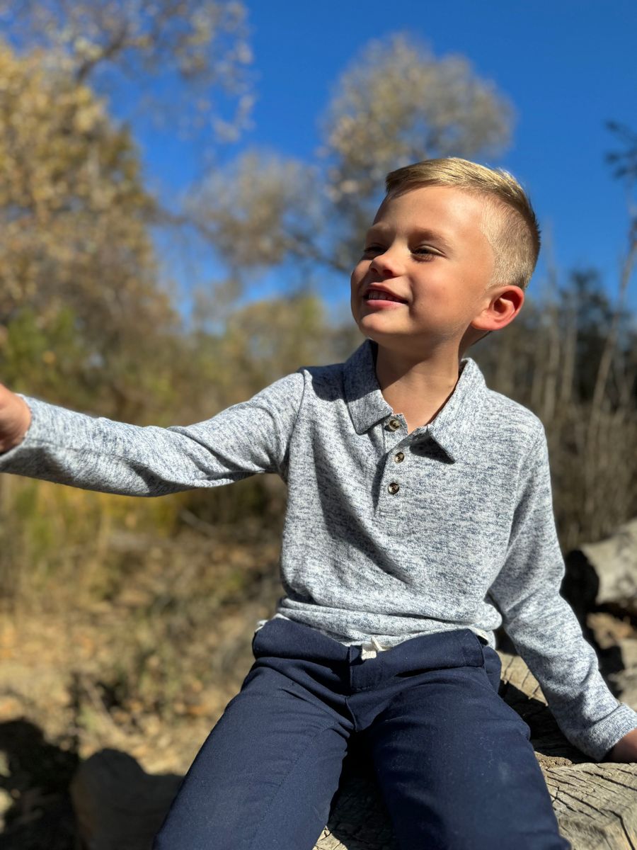 heather navy long sleeve polo
