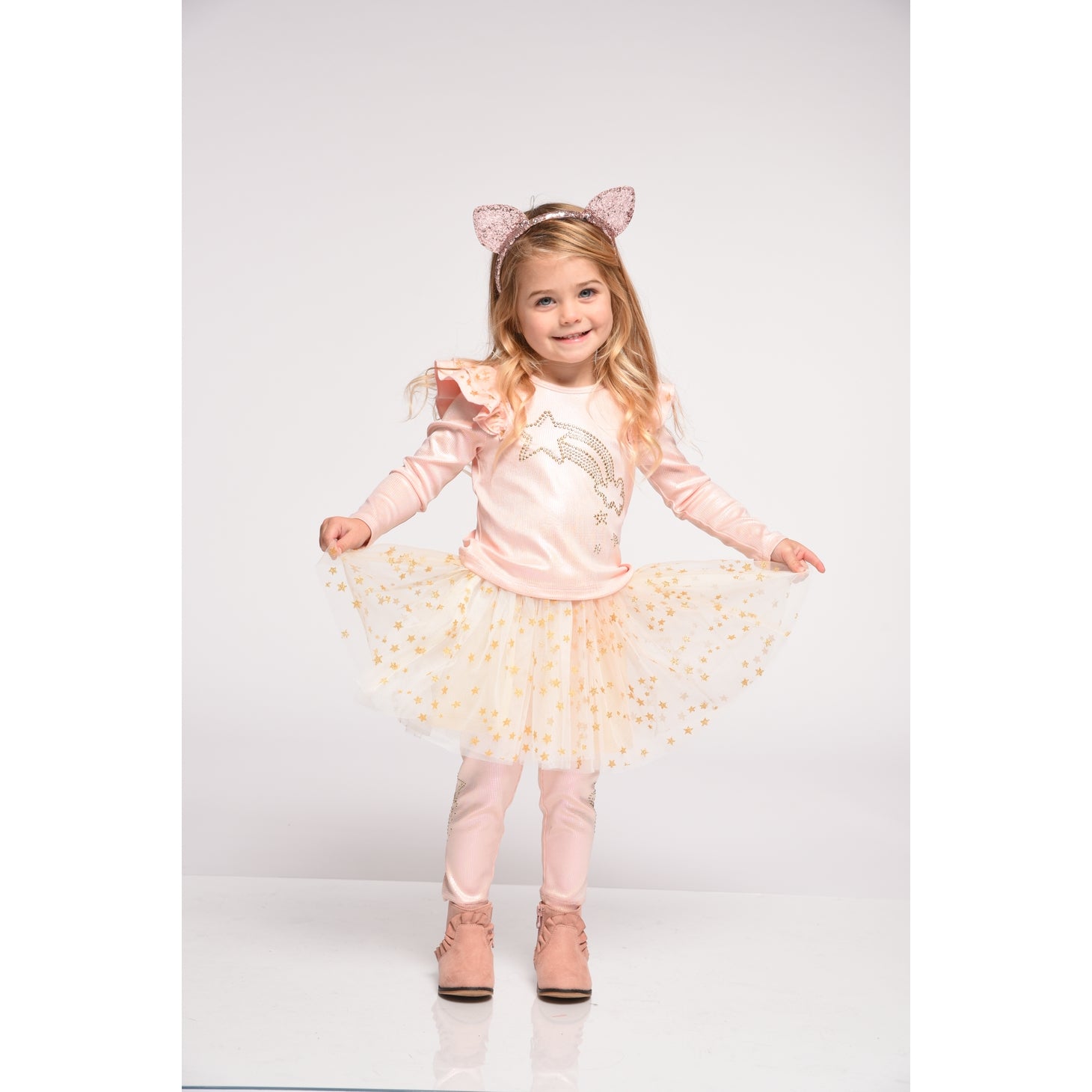 Long Sleeve Ruffle Top W/Star & Cloud Hotfix