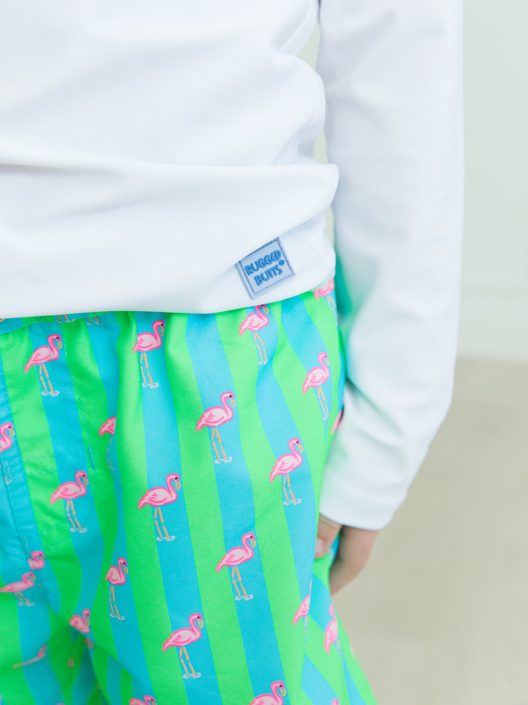 Complete your boy's summer swim outfit with these Swim Trunks. With its inner mesh lining and adjustable drawstrings on the inside, not only will he look good but feel good, too.