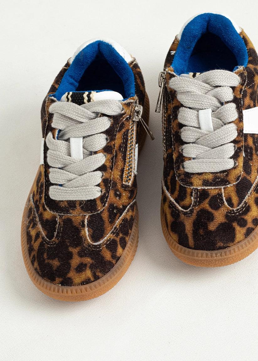 Let their wild side roam in style. The SYDNEY MINI in Leopard Printbrings playful flair to your little one’s sneaker rotation. Designed for comfort and easy all-day wear, it combines a bold animal print with contrast details and a classic gum sole for a retro-cool finish. Style meets function for the tiniest trendsetters.