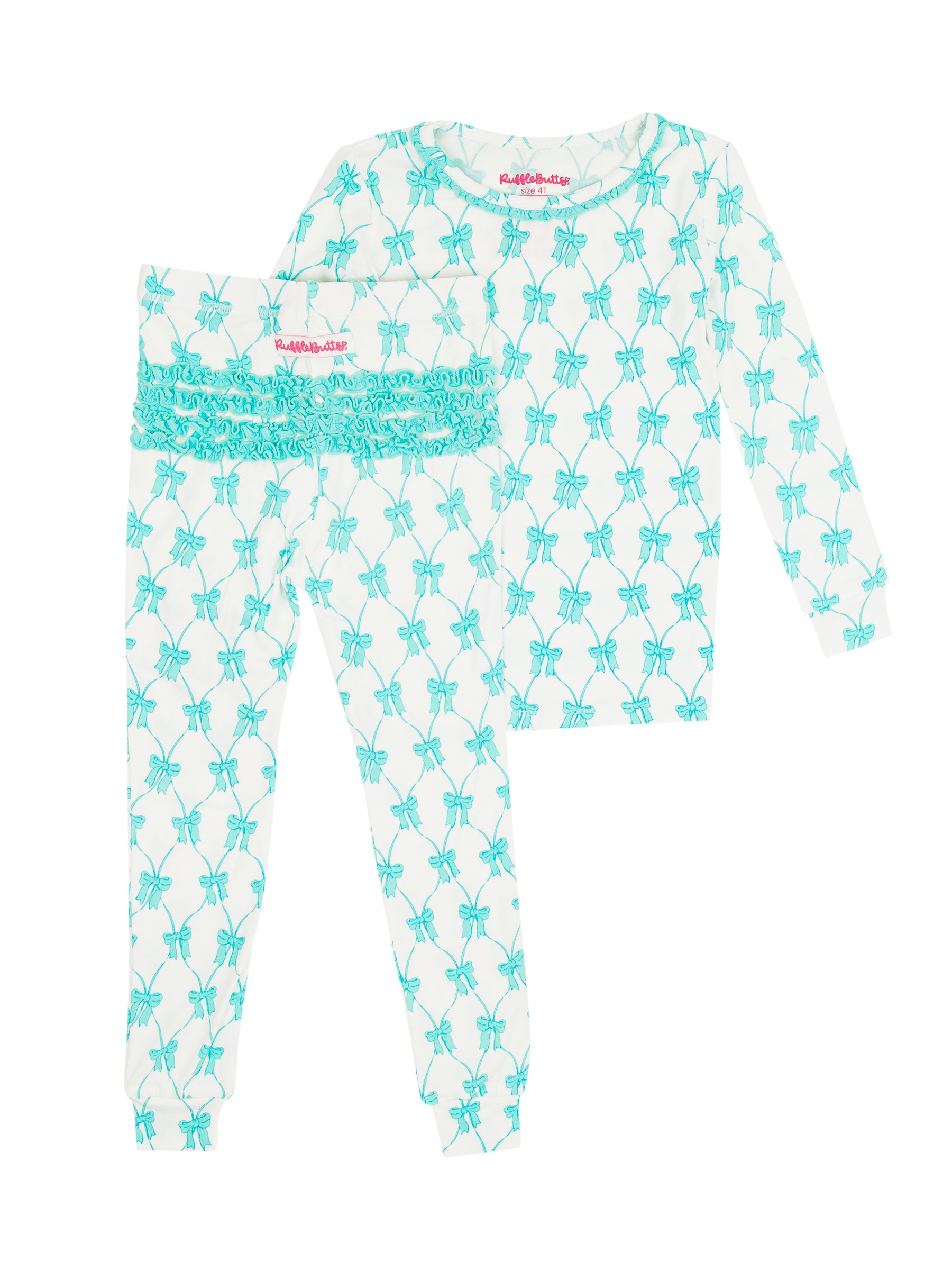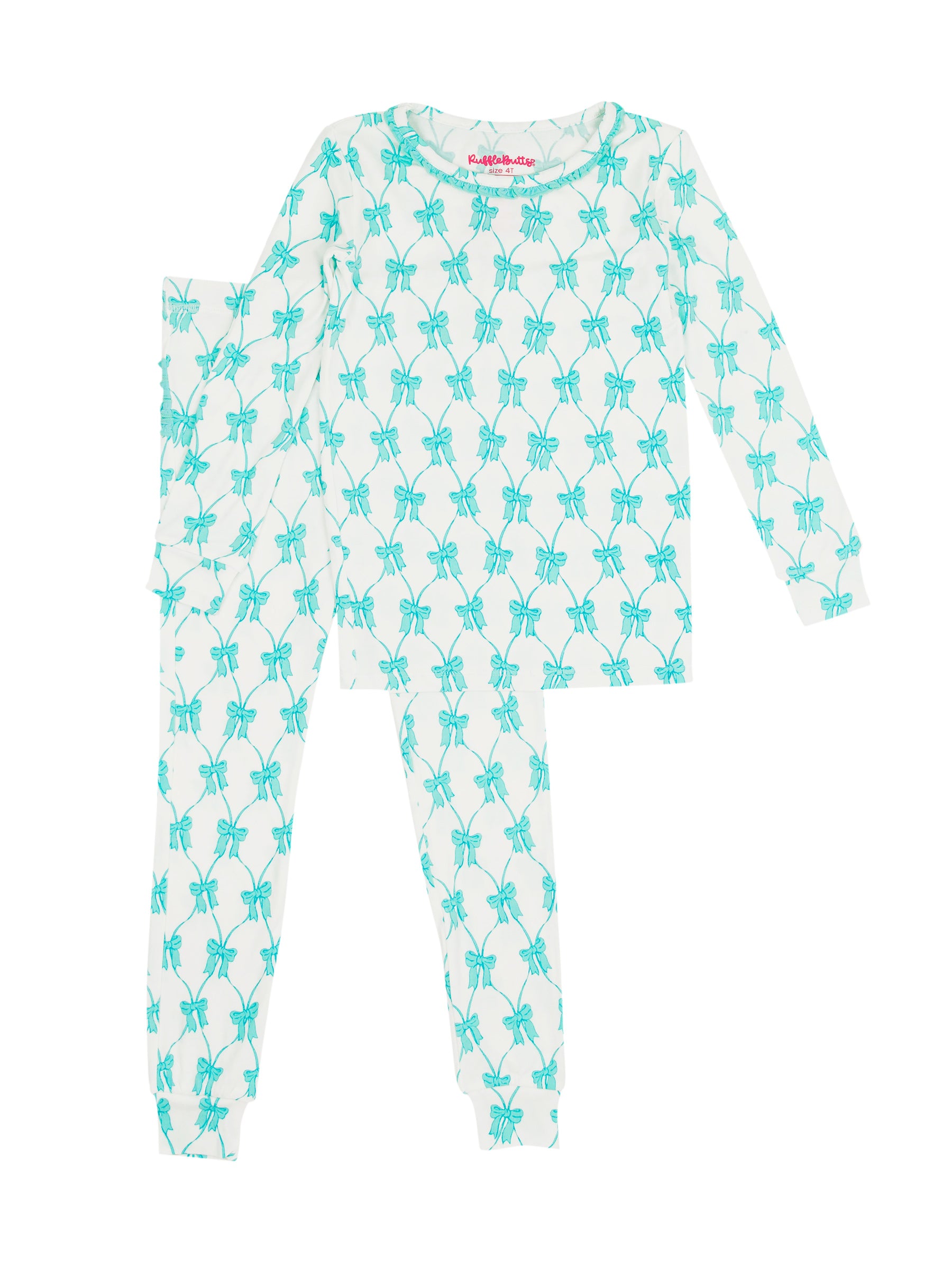 Teal Fairytale Bows Long Sleeve Pajama Set