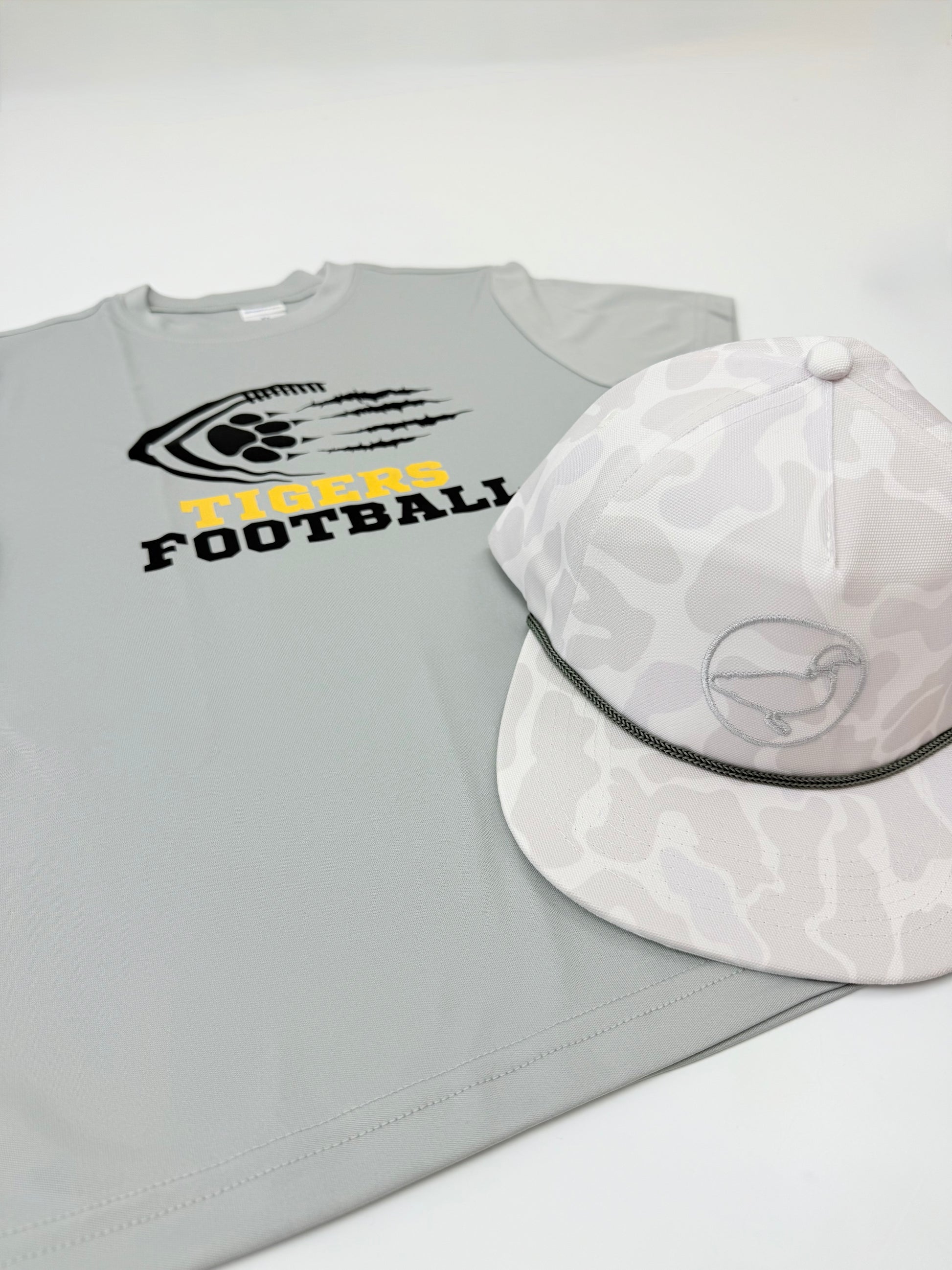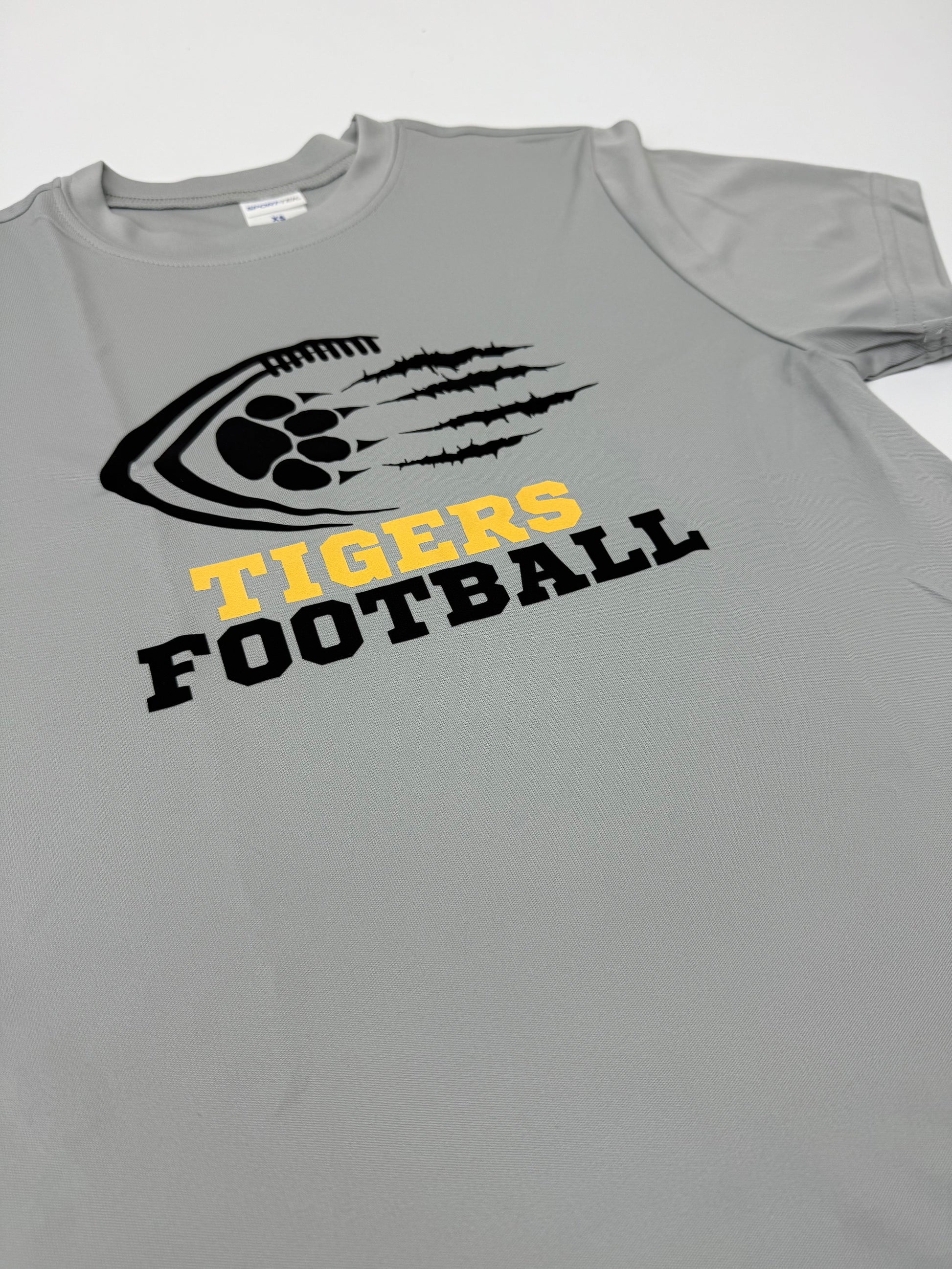 Light gray dri-fit short sleeve shirt with Tigers graphic