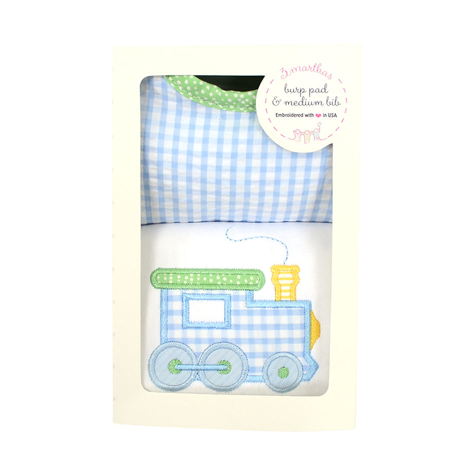 Train Boxed Appliqued Burp & Bib Set